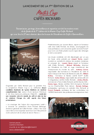 Transmission, partage, bienveillance et expertise ont été les maitres mots de la finale de la 1ère édition de la Master Cup Cafés Richardqui a eu lieu le 27 mars dernier dans les locaux de l’Académie du Café à Gennevilliers.