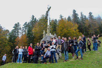 Des parapluies un peu inquiets car le programme de l’AG millésime 2019 indiquait : balade dans le massif vers le monastère et pique-nique en extérieur ... de bonnes chaussures de marche étaient d’ailleurs recommandées.